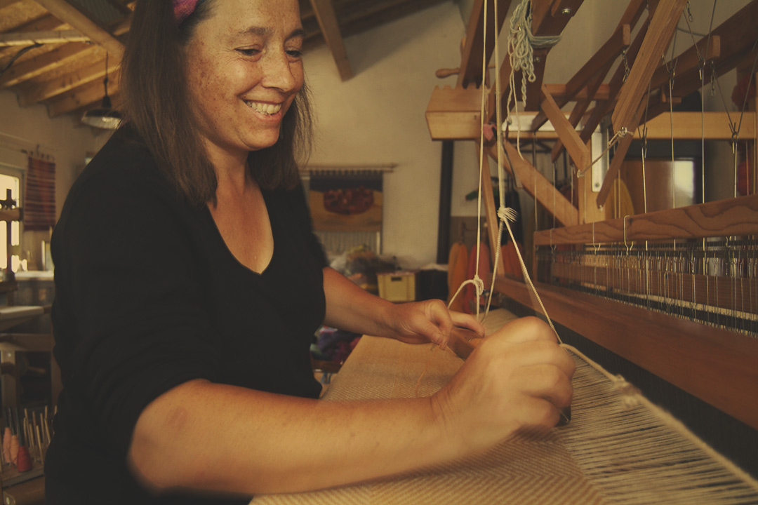 Beate hat biologischen Anbau und Viehzucht im Pyrenäenvorland betrieben und aus der Wolle ihrer eigenen Schafe hat sie ihre ersten Stücke gefertigt.